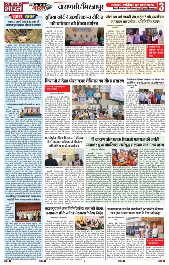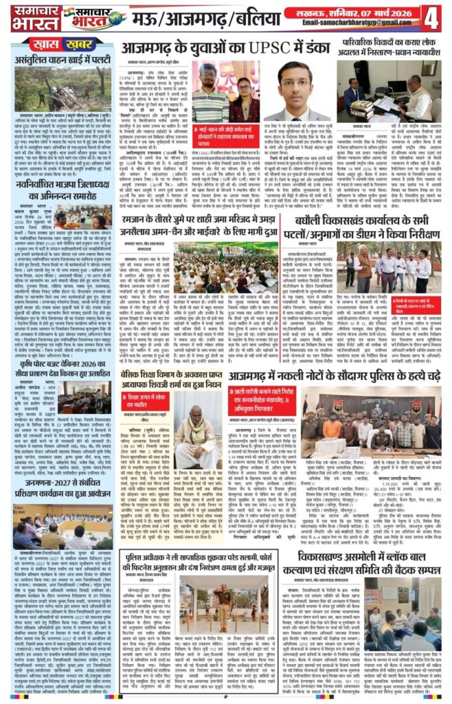 Homeउत्तर प्रदेशहर खबर पर पैनी नजर! उत्तर प्रदेश हर खबर पर पैनी नजर! By Ramesh Prasad Soni March 6, 2026 0 2 Share FacebookTwitterPinterestWhatsAppTelegram Tags#देश विदेशghazipur newsआजमगढ़ न्यूज़उत्तर प्रदेश समाचारदेवरिया न्यूज़बरेली समाचारमऊ समाचार मऊमिर्जापुर खबरवाराणसी न्यूज़सोनभद्र समाचार Share FacebookTwitterPinterestWhatsAppTelegram Previous articleसंघर्ष के बीच चमकी सफलता: भाई-मां को खोने के बाद भी प्रियंका चौधरी ने UPSC में पाया 79वां स्थान Ramesh Prasad Soni RELATED ARTICLES Blog संघर्ष के बीच चमकी सफलता: भाई-मां को खोने के बाद भी प्रियंका चौधरी ने UPSC में पाया 79वां स्थान March 6, 2026 Blog पुलिस की होली: कुर्ता फाड़ अंदाज में मना अनोखा होली मिलन समारोह March 5, 2026 Blog समाजसेवी निजामुद्दीन सिद्दीकी की अनोखी पहल: रंग और चंदे के सहारे किडनी पीड़ित युवक की जिंदगी बचाने का अभियान March 5, 2026 LEAVE A REPLY Cancel reply Comment: Please enter your comment! Name:* Please enter your name here Email:* You have entered an incorrect email address! Please enter your email address here Website: Save my name, email, and website in this browser for the next time I comment. Most Popular संघर्ष के बीच चमकी सफलता: भाई-मां को खोने के बाद भी प्रियंका चौधरी ने UPSC में पाया 79वां स्थान March 6, 2026 समाचार भारत March 5, 2026 पुलिस की होली: कुर्ता फाड़ अंदाज में मना अनोखा होली मिलन समारोह March 5, 2026 समाजसेवी निजामुद्दीन सिद्दीकी की अनोखी पहल: रंग और चंदे के सहारे किडनी पीड़ित युवक की जिंदगी बचाने का अभियान March 5, 2026 Load more Recent Comments A WordPress Commenter on Hello world!