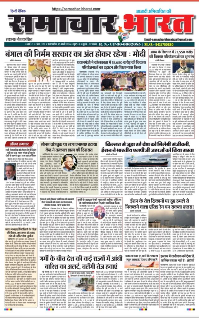 HomeBlogसमाचार भारत ऑनलाइन Blogpolice newsउत्तर प्रदेश सरकारएक्सीडेंट न्यूज़बड़ी खबरराजनीति समाचार भारत ऑनलाइन By Ramesh Prasad Soni March 14, 2026 0 9 Share FacebookTwitterPinterestWhatsAppTelegram Tagsउत्तर प्रदेश समाचार Share FacebookTwitterPinterestWhatsAppTelegram Previous articleNext articleहोली मिलन समारोह ने एक तीर से साधे कई निशाने,बोले एमएलसी.. Ramesh Prasad Soni RELATED ARTICLES Blog Www samachar-bharat.com/ई पेपर March 26, 2026 police news Www samachar -bharat. Com / epepar March 23, 2026 Blog अवधेश राजभर पुनः बने भाजपा जिला महामंत्री, क्षेत्र में खुशी की लहर- March 23, 2026 LEAVE A REPLY Cancel reply Comment: Please enter your comment! Name:* Please enter your name here Email:* You have entered an incorrect email address! Please enter your email address here Website: Save my name, email, and website in this browser for the next time I comment. Most Popular Www samachar-bharat.com/ई पेपर March 26, 2026 Www samachar -bharat. Com / epepar March 23, 2026 अवधेश राजभर पुनः बने भाजपा जिला महामंत्री, क्षेत्र में खुशी की लहर- March 23, 2026 भाजपा प्रशिक्षण वर्ग का समापन, कार्यकर्ताओं को जन-जन तक उपलब्धियां पहुंचाने का आह्वान March 22, 2026 Load more Recent Comments A WordPress Commenter on Hello world!