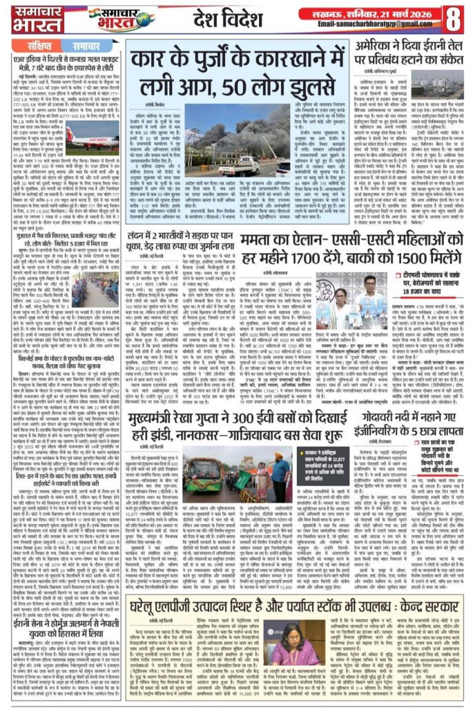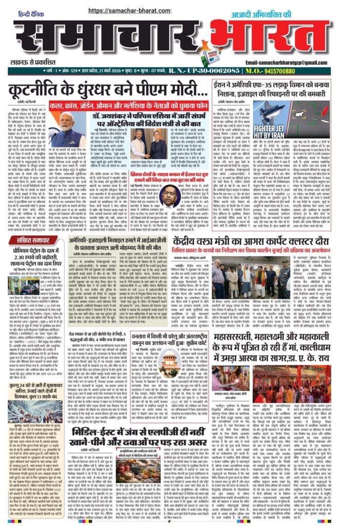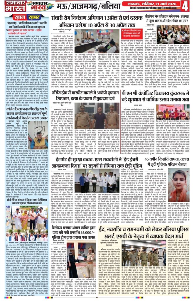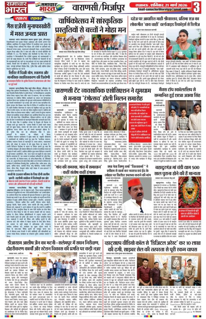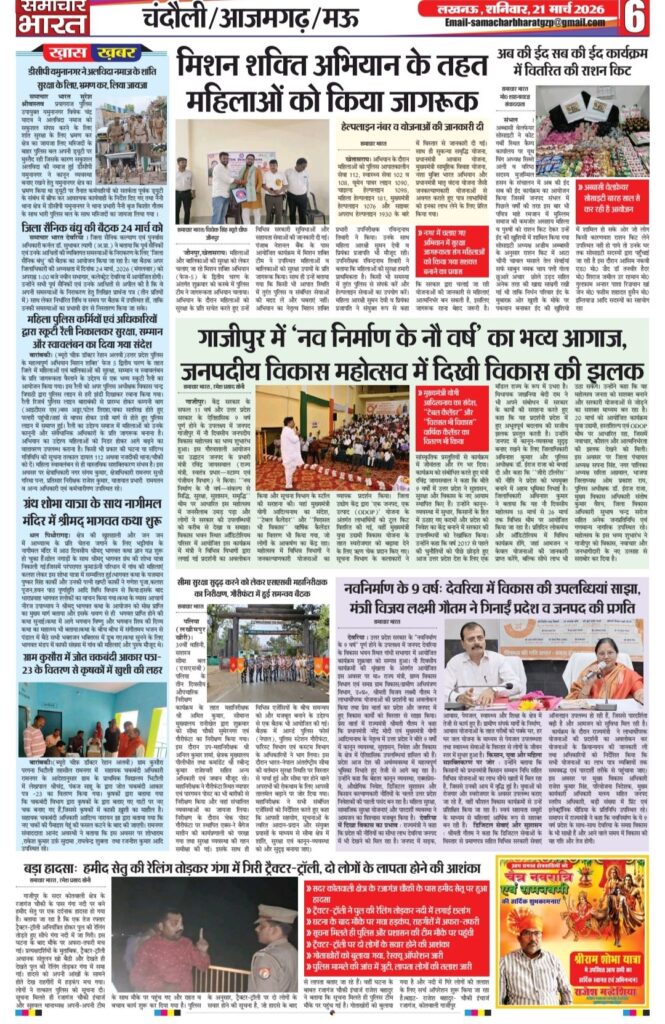 HomeBlogwww.samachar-bharat.com / ईपेपर Blog www.samachar-bharat.com / ईपेपर By Ramesh Prasad Soni March 20, 2026 0 29 Share FacebookTwitterPinterestWhatsAppTelegram Share FacebookTwitterPinterestWhatsAppTelegram Previous articleब्लैकमेलिंग से परेशान छात्र ने दी जान, गांव में शोक; पुलिस जांच में जुटीNext articleयूपी कॉलेज कांड: पीड़ित परिवार से मिले एमएलसी विशाल सिंह चंचल, 5 लाख की सहायता व सख्त कार्रवाई का भरोसा Ramesh Prasad Soni RELATED ARTICLES Blog Www samachar-bharat.com/ई पेपर March 26, 2026 Blog अवधेश राजभर पुनः बने भाजपा जिला महामंत्री, क्षेत्र में खुशी की लहर- March 23, 2026 Blog भाजपा प्रशिक्षण वर्ग का समापन, कार्यकर्ताओं को जन-जन तक उपलब्धियां पहुंचाने का आह्वान March 22, 2026 LEAVE A REPLY Cancel reply Comment: Please enter your comment! Name:* Please enter your name here Email:* You have entered an incorrect email address! Please enter your email address here Website: Save my name, email, and website in this browser for the next time I comment. Most Popular Www samachar-bharat.com/ई पेपर March 26, 2026 Www samachar -bharat. Com / epepar March 23, 2026 अवधेश राजभर पुनः बने भाजपा जिला महामंत्री, क्षेत्र में खुशी की लहर- March 23, 2026 भाजपा प्रशिक्षण वर्ग का समापन, कार्यकर्ताओं को जन-जन तक उपलब्धियां पहुंचाने का आह्वान March 22, 2026 Load more Recent Comments A WordPress Commenter on Hello world!