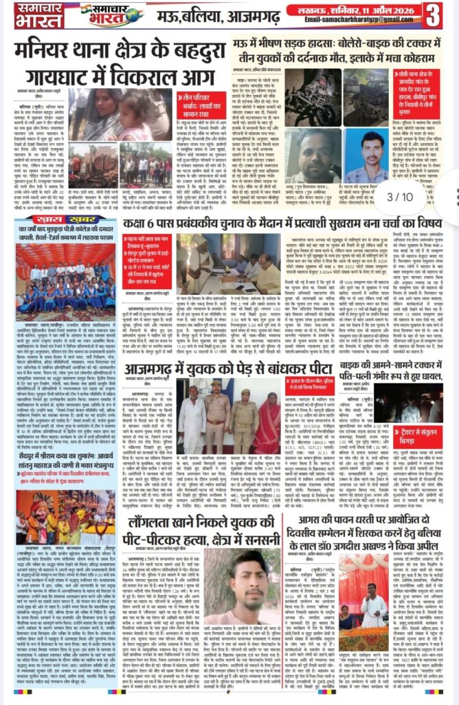 HomeBlogसमाचार भारत अब ऑनलाइन, आप भी देखें Blog समाचार भारत अब ऑनलाइन, आप भी देखें By Ramesh Prasad Soni April 10, 2026 0 12 Share FacebookTwitterPinterestWhatsAppTelegram Share FacebookTwitterPinterestWhatsAppTelegram Previous articleगाजीपुर-वाराणसी फोरलेन पर भीषण हादसा: तेज रफ्तार बस डिवाइडर पर चढ़कर पलटी, महिला की मौत, 40 से अधिक घायलNext article‘बस्ती चलो अभियान’ से अलीपुर मदरा में दिखा जनसंपर्क का दम, योजनाओं के लाभार्थियों से सीधा संवाद Ramesh Prasad Soni RELATED ARTICLES Blog बिजली चेकिंग से मचा हड़कंप: 5 कनेक्शन काटे, 5 पर केस, ₹36 हजार वसूली April 21, 2026 Blog जखनियां की माटी के सच्चे नायक थे विजय बहादुर सिंह, उनका जीवन राष्ट्र निर्माण का दीप स्तंभ” — मनोज सिन्हा April 21, 2026 Blog बदहाल मिश्र बाज़ार दवा मंडी पर फूटा व्यापारियों का गुस्सा: बुनियादी सुविधाओं को लेकर नगर पालिका के खिलाफ मोर्चा April 18, 2026 LEAVE A REPLY Cancel reply Comment: Please enter your comment! Name:* Please enter your name here Email:* You have entered an incorrect email address! Please enter your email address here Website: Save my name, email, and website in this browser for the next time I comment. Most Popular बिजली चेकिंग से मचा हड़कंप: 5 कनेक्शन काटे, 5 पर केस, ₹36 हजार वसूली April 21, 2026 जखनियां की माटी के सच्चे नायक थे विजय बहादुर सिंह, उनका जीवन राष्ट्र निर्माण का दीप स्तंभ” — मनोज सिन्हा April 21, 2026 बदहाल मिश्र बाज़ार दवा मंडी पर फूटा व्यापारियों का गुस्सा: बुनियादी सुविधाओं को लेकर नगर पालिका के खिलाफ मोर्चा April 18, 2026 21 अप्रैल को ऐतिहासिक क्षण: समाजसेवी विजय बहादुर सिंह की प्रतिमा का भव्य अनावरण April 17, 2026 Load more Recent Comments A WordPress Commenter on Hello world!