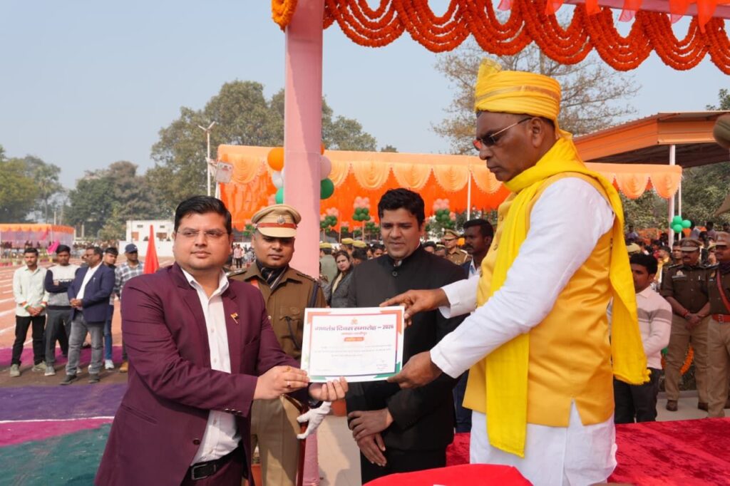 गाजीपुर। 77वें गणतंत्र दिवस के गौरवशाली अवसर पर पुलिस लाइन गाजीपुर में भव्य परेड एवं सम्मान समारोह का आयोजन किया गया। कार्यक्रम के मुख्य अतिथि माननीय श्री ओमप्रकाश राजभर (कैबिनेट मंत्री, उत्तर प्रदेश) रहे। विशिष्ट अतिथि के रूप में जिलाधिकारी गाजीपुर एवं पुलिस अधीक्षक गाजीपुर डॉ. ईरज राजा उपस्थित रहे। अतिथियों द्वारा ध्वजारोहण कर राष्ट्रगान के साथ तिरंगे को सलामी दी गई।