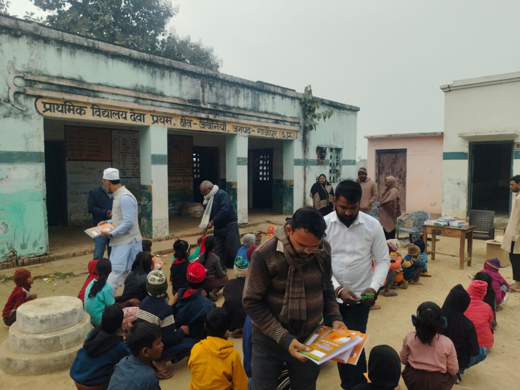 दुल्लहपुर (गाजीपुर)। जखनिया विकासखंड क्षेत्र के अंतर्गत जिला पंचायत सदस्य प्रथम के भावी प्रत्याशी व समाजसेवी निजामुद्दीन सिद्दीकी द्वारा शिक्षा प्रोत्साहन अभियान के तहत परिषदीय विद्यालयों के बच्चों को कॉपी और पेन वितरित किए गए। कार्यक्रम का उद्देश्य आर्थिक रूप से कमजोर विद्यार्थियों को पढ़ाई के लिए आवश्यक सामग्री उपलब्ध कराना रहा।