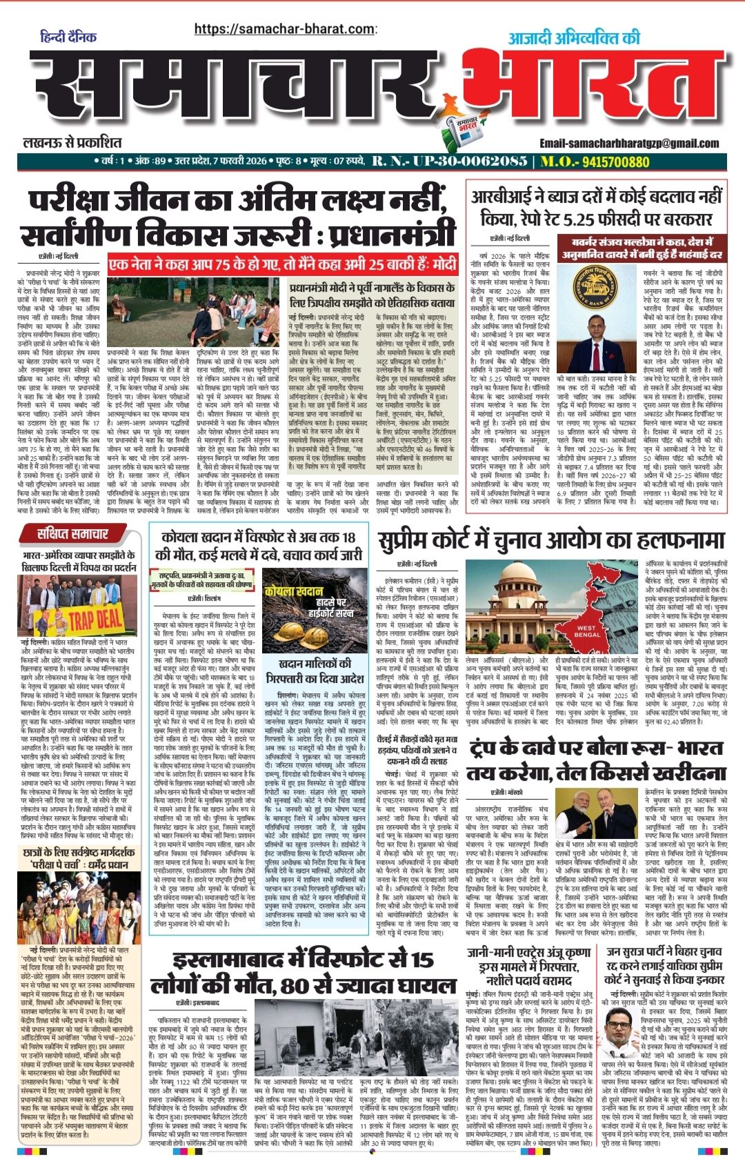 Homeउत्तर प्रदेशसमाचार भारत अब ऑनलाइन! उत्तर प्रदेशफर्क साफ है? क्योंकि समाचार भारत आप तकराजनीति समाचार भारत अब ऑनलाइन! By Ramesh Prasad Soni February 6, 2026 0 21 Share FacebookTwitterPinterestWhatsAppTelegram Tags#देश विदेशउत्तर प्रदेश समाचार Share FacebookTwitterPinterestWhatsAppTelegram Previous articleदेश की पहली सहकारिता आधारित टैक्सी सेवा ‘भारत टैक्सी’ का शुभारंभ, मुख्यमंत्री योगी ने चालक बंधुओं को दी बधाईNext articleमंडुवाडीह चौराहे पर सुबह-सुबह लगा भीषण जाम, स्कूली बसें, एंबुलेंस फंसी, राहगीर हुए हलकान Ramesh Prasad Soni RELATED ARTICLES उत्तर प्रदेश हर खबर पर पैनी नजर! March 6, 2026 Blog संघर्ष के बीच चमकी सफलता: भाई-मां को खोने के बाद भी प्रियंका चौधरी ने UPSC में पाया 79वां स्थान March 6, 2026 Blog पुलिस की होली: कुर्ता फाड़ अंदाज में मना अनोखा होली मिलन समारोह March 5, 2026 LEAVE A REPLY Cancel reply Comment: Please enter your comment! Name:* Please enter your name here Email:* You have entered an incorrect email address! Please enter your email address here Website: Save my name, email, and website in this browser for the next time I comment. Most Popular हर खबर पर पैनी नजर! March 6, 2026 संघर्ष के बीच चमकी सफलता: भाई-मां को खोने के बाद भी प्रियंका चौधरी ने UPSC में पाया 79वां स्थान March 6, 2026 समाचार भारत March 5, 2026 पुलिस की होली: कुर्ता फाड़ अंदाज में मना अनोखा होली मिलन समारोह March 5, 2026 Load more Recent Comments A WordPress Commenter on Hello world!