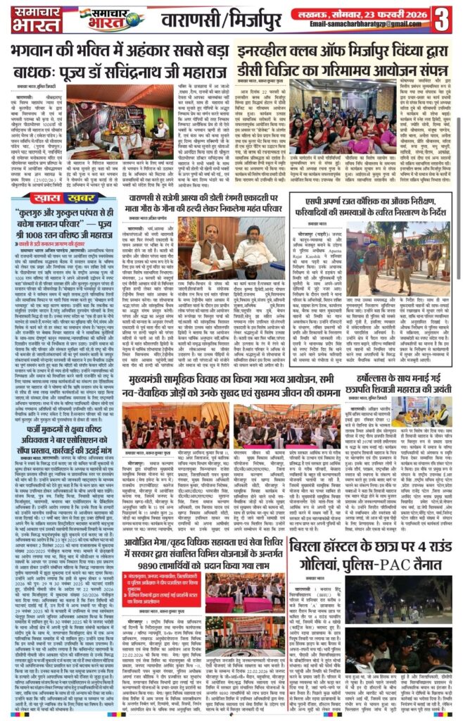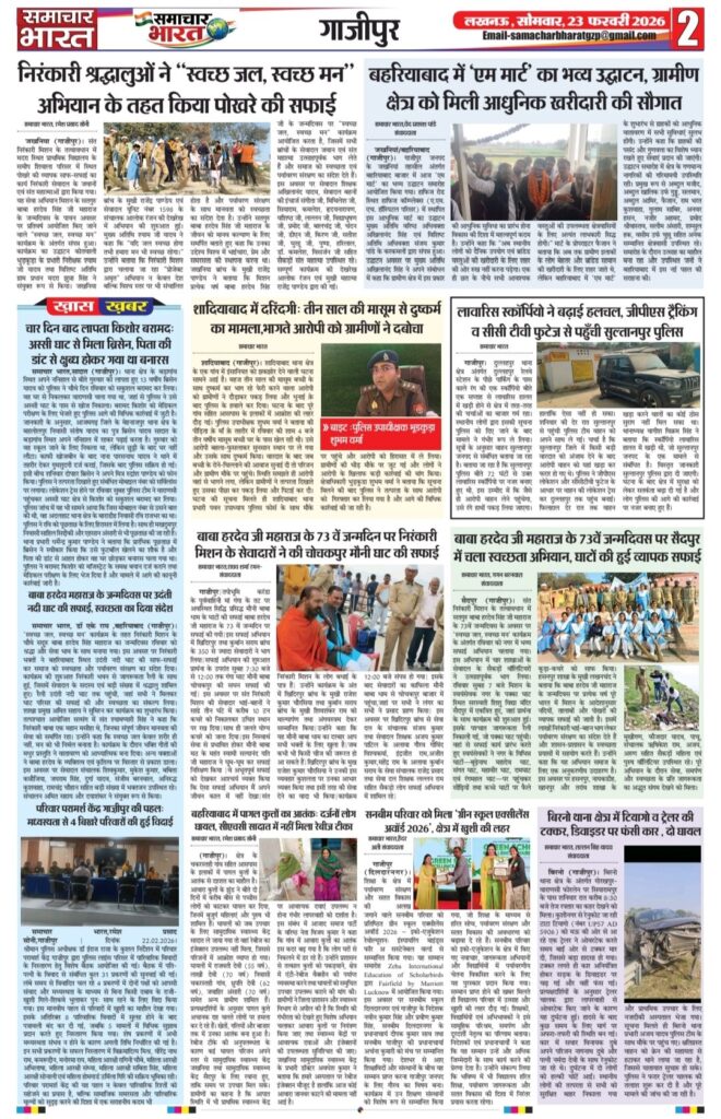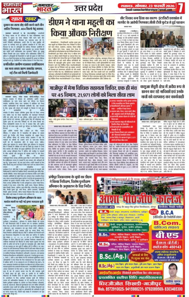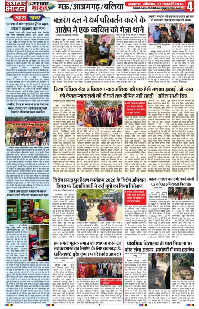 Homeghazipurसमाचार भारत अब ऑनलाइन!.. ghazipurpolice newsअपराधउत्तर प्रदेशदेशपंचायती राज विभागफर्क साफ है? क्योंकि समाचार भारत आप तकविदेश समाचार भारत अब ऑनलाइन!.. By Ramesh Prasad Soni February 22, 2026 0 12 Share FacebookTwitterPinterestWhatsAppTelegram Tagsउत्तर प्रदेश समाचार Share FacebookTwitterPinterestWhatsAppTelegram Previous articleशादियाबाद में दरिंदगी: तीन साल की मासूम से दुष्कर्म का मामला,भागते आरोपी को ग्रामीणों ने दबोचाNext articleदुल्लहपुर में परीक्षा केंद्र पर फर्जी अभ्यर्थी बैठाने का मामला, प्रधानाचार्य सहित दो पर मुकदमा दर्ज Ramesh Prasad Soni RELATED ARTICLES Blog पुलिस की होली: कुर्ता फाड़ अंदाज में मना अनोखा होली मिलन समारोह March 5, 2026 Blog समाजसेवी निजामुद्दीन सिद्दीकी की अनोखी पहल: रंग और चंदे के सहारे किडनी पीड़ित युवक की जिंदगी बचाने का अभियान March 5, 2026 Blog प्रतिष्ठित दवा व्यापारी हरिशंकर तिवारी का निधन, क्षेत्र में शोक की लहर March 5, 2026 LEAVE A REPLY Cancel reply Comment: Please enter your comment! Name:* Please enter your name here Email:* You have entered an incorrect email address! Please enter your email address here Website: Save my name, email, and website in this browser for the next time I comment. Most Popular समाचार भारत March 5, 2026 पुलिस की होली: कुर्ता फाड़ अंदाज में मना अनोखा होली मिलन समारोह March 5, 2026 समाजसेवी निजामुद्दीन सिद्दीकी की अनोखी पहल: रंग और चंदे के सहारे किडनी पीड़ित युवक की जिंदगी बचाने का अभियान March 5, 2026 प्रतिष्ठित दवा व्यापारी हरिशंकर तिवारी का निधन, क्षेत्र में शोक की लहर March 5, 2026 Load more Recent Comments A WordPress Commenter on Hello world!