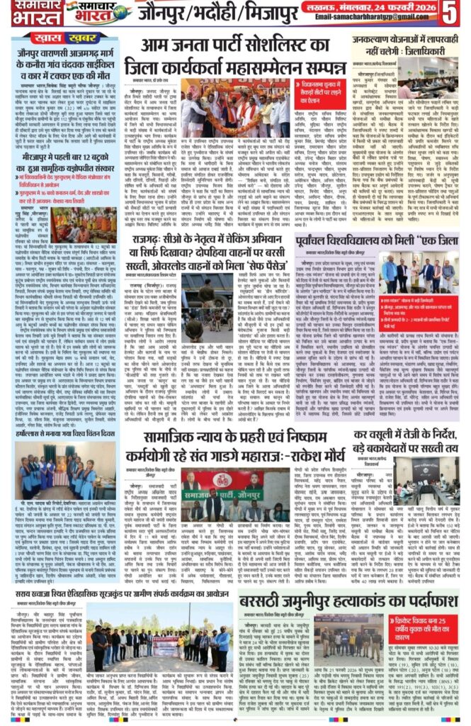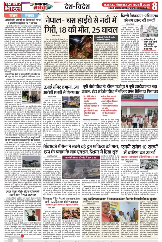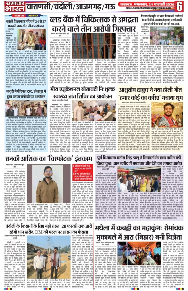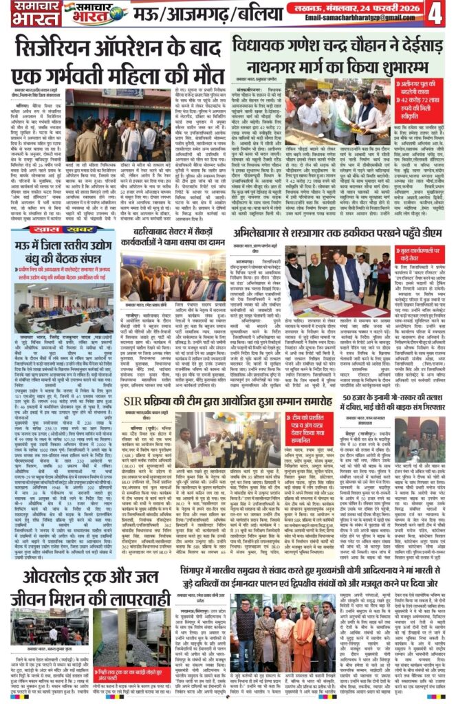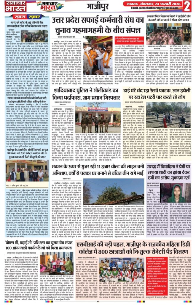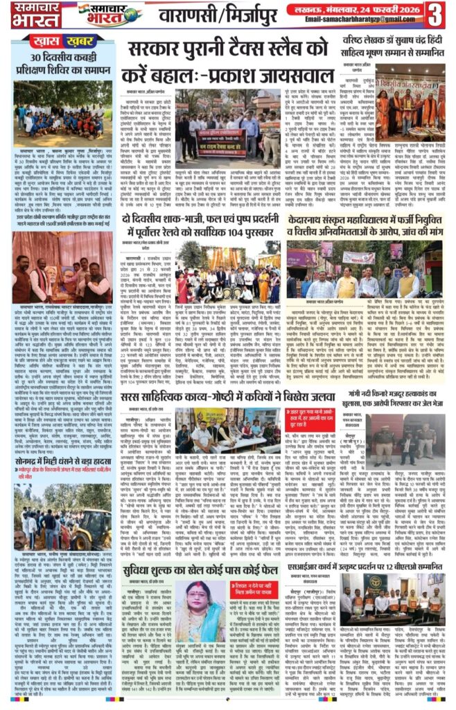 Homeghazipurसमाचार भारत अब ऑनलाइन ghazipurpolice newsउत्तर प्रदेशउत्तर प्रदेश सरकारकारोबारफर्क साफ है? क्योंकि समाचार भारत आप तक समाचार भारत अब ऑनलाइन By Ramesh Prasad Soni February 23, 2026 0 21 Share FacebookTwitterPinterestWhatsAppTelegram Tagsउत्तर प्रदेश समाचार Share FacebookTwitterPinterestWhatsAppTelegram Previous articleदुल्लहपुर में परीक्षा केंद्र पर फर्जी अभ्यर्थी बैठाने का मामला, प्रधानाचार्य सहित दो पर मुकदमा दर्जNext articleशादियाबाद में ‘यादव जी लव स्टोरी’ फिल्म का विरोध, ज्ञापन सौंपकर रिलीज पर रोक की मांग Ramesh Prasad Soni RELATED ARTICLES Blog पुलिस की होली: कुर्ता फाड़ अंदाज में मना अनोखा होली मिलन समारोह March 5, 2026 Blog समाजसेवी निजामुद्दीन सिद्दीकी की अनोखी पहल: रंग और चंदे के सहारे किडनी पीड़ित युवक की जिंदगी बचाने का अभियान March 5, 2026 Blog प्रतिष्ठित दवा व्यापारी हरिशंकर तिवारी का निधन, क्षेत्र में शोक की लहर March 5, 2026 LEAVE A REPLY Cancel reply Comment: Please enter your comment! Name:* Please enter your name here Email:* You have entered an incorrect email address! Please enter your email address here Website: Save my name, email, and website in this browser for the next time I comment. Most Popular समाचार भारत March 5, 2026 पुलिस की होली: कुर्ता फाड़ अंदाज में मना अनोखा होली मिलन समारोह March 5, 2026 समाजसेवी निजामुद्दीन सिद्दीकी की अनोखी पहल: रंग और चंदे के सहारे किडनी पीड़ित युवक की जिंदगी बचाने का अभियान March 5, 2026 प्रतिष्ठित दवा व्यापारी हरिशंकर तिवारी का निधन, क्षेत्र में शोक की लहर March 5, 2026 Load more Recent Comments A WordPress Commenter on Hello world!